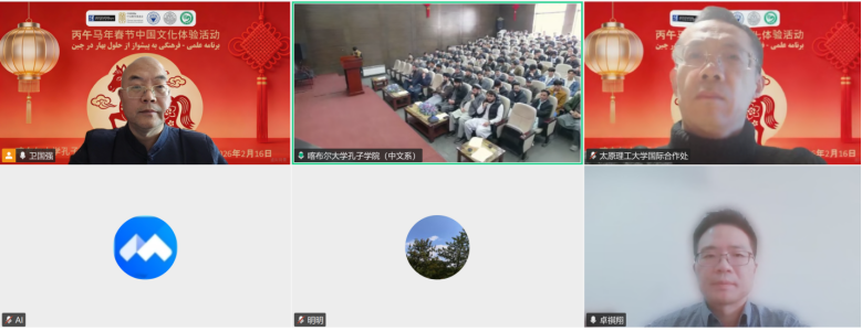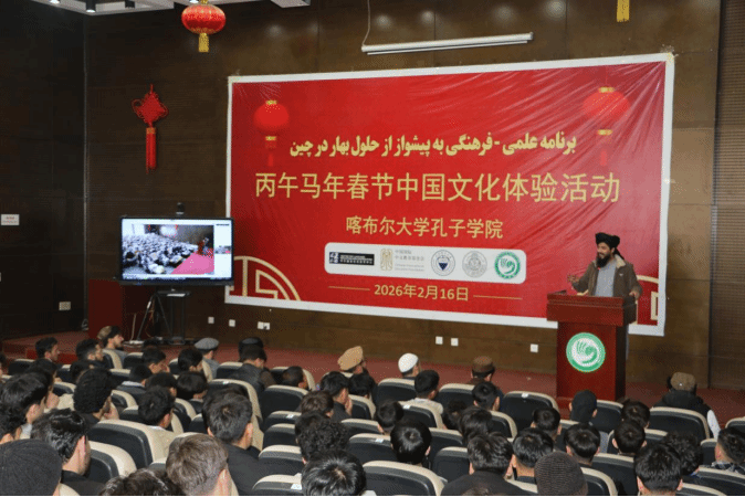 2026年2月16日,我校合作共建的喀布尔大学孔子学院举办丙午马年春节中国文化体验活动,喀布尔大学学生事务副校长萨拉哈丁·阿尤比(Salahuddin Ayoubi),孔院阿方院长,孔院执行院长,喀布尔大学外国语学院副院长、各系主任及师生员工等150余人现场参与。中国驻阿富汗大使馆政治处代理主任卓祺翔,我校孔子学院办公室相关负责人、孔子学院中方院长等以线上形式参加。